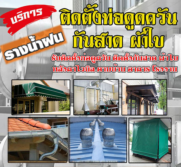 ระบบดูดควัน (ปล่องควัน), ท่อดูดฝุ่น ท่อดูดไอน้ำมัน ท่อดูดละอองน้ำมัน ท่อดูดไอสารเคมี ออกแบบ ระบบเติมความเย็น ระบบท่อแอร์ ท่อระบายความร้อน ท่อเติมอากาศ จำหน่าย เครื่องดูดฝุ่น ละเอียด (Duft Collector) เครื่องดูดฝุ่น หยาบ (Cyclone) ทำความสะอาดท่อ และ พัดลม ท่อดักสังกะสี ท่อดักสแตนเลส ท่อดักเหล็ก อุปกรณ์ดักเมท พัดลมระบบอากาศ โบลเวอร์ งานหุ้มฉนวนความร้อน และรับผลิต ตามแบบ ครบวงจร