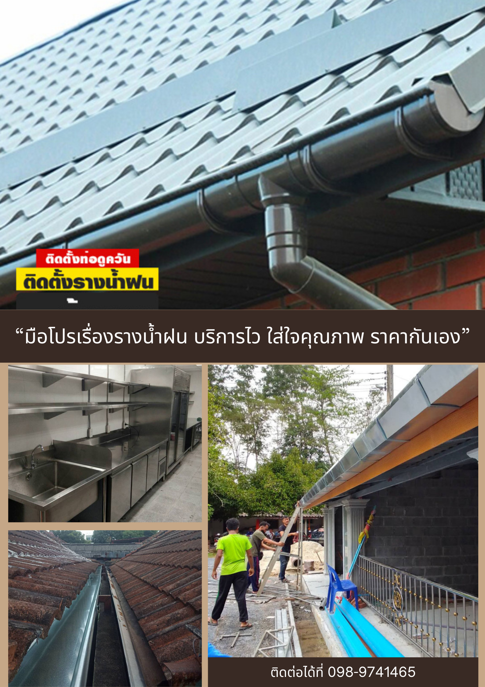 3. เรารับแก้ปัญหา รื้อย้ายรางน้ำฝนเก่าผุพังรั่วหลุดหมดสภาพ ซ่อมปรับปรุงเชิงชายเพื่อติดตั้งรางน้ำฝนใหม่แทนที่ได้มั่นคง
