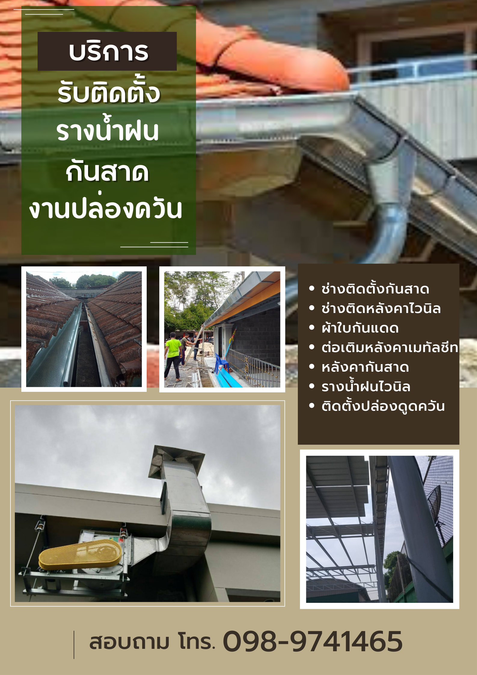 1. เพราะงานติดตั้งรางน้ำฝนเป็นงานเสี่ยงตกจากที่สูง ช่างเราเป็นมืออาชีพชำนาญงานโดยเฉพาะ